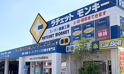 整備工場の名前はラチェットモンキーと申しまして「車が好きなお客様に対しても、そうでもないお客様に対しても、モンキーレンチの様に間口を調整してガッチリとマッチする接客をし、ご満足していただける世界へラチェットハンドルの様に誘導できるお店したい!」という思いから命名しました。