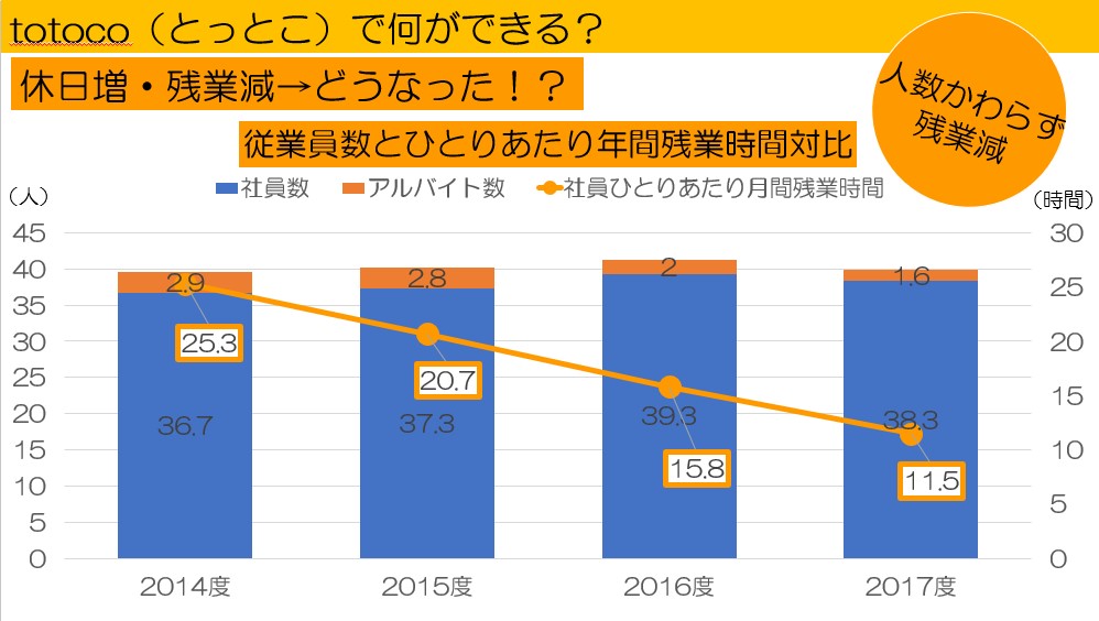 図3 totoco 採用後3 年間の1 人あたり月間残業時間の推移