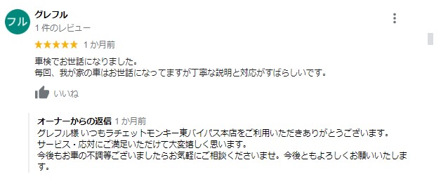 クチコミ内容の良し悪しにかかわらず、必ずアンサーを書きましょう。そのことが、まだお店をご利用されていない方の興味をそそり、ご来店いただくきっかけになるのですから(写真はラチェットモンキーに寄せられたクチコミの一例です)。