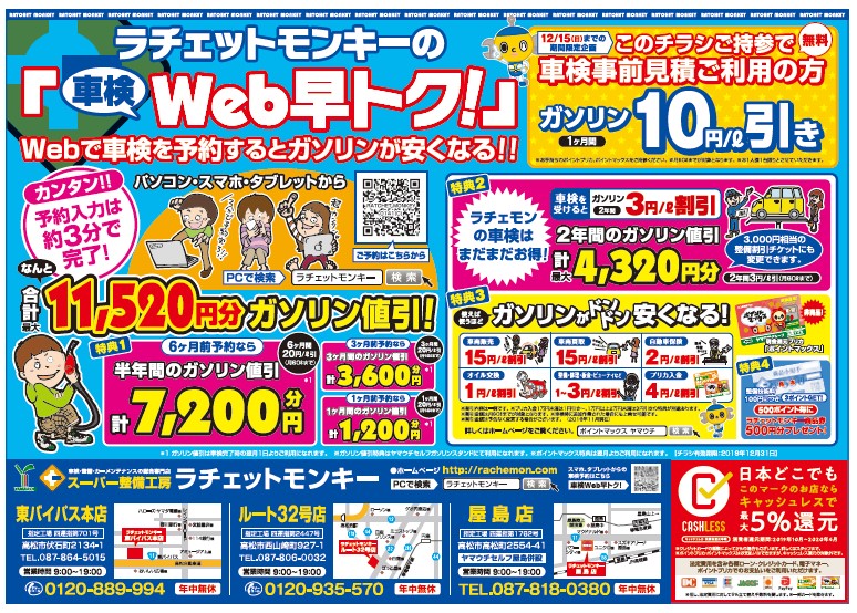 totocoが生まれた整備工場で使用しているネット予約案内チラシと、車検6ヶ月前予約案内DM