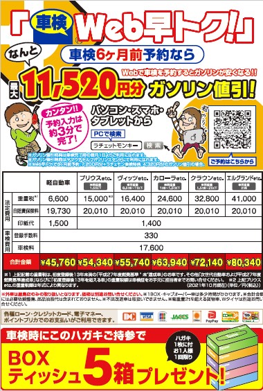 ※「車検」は「Web」で「早く」予約すると「オトク」を略して車検Web早トク