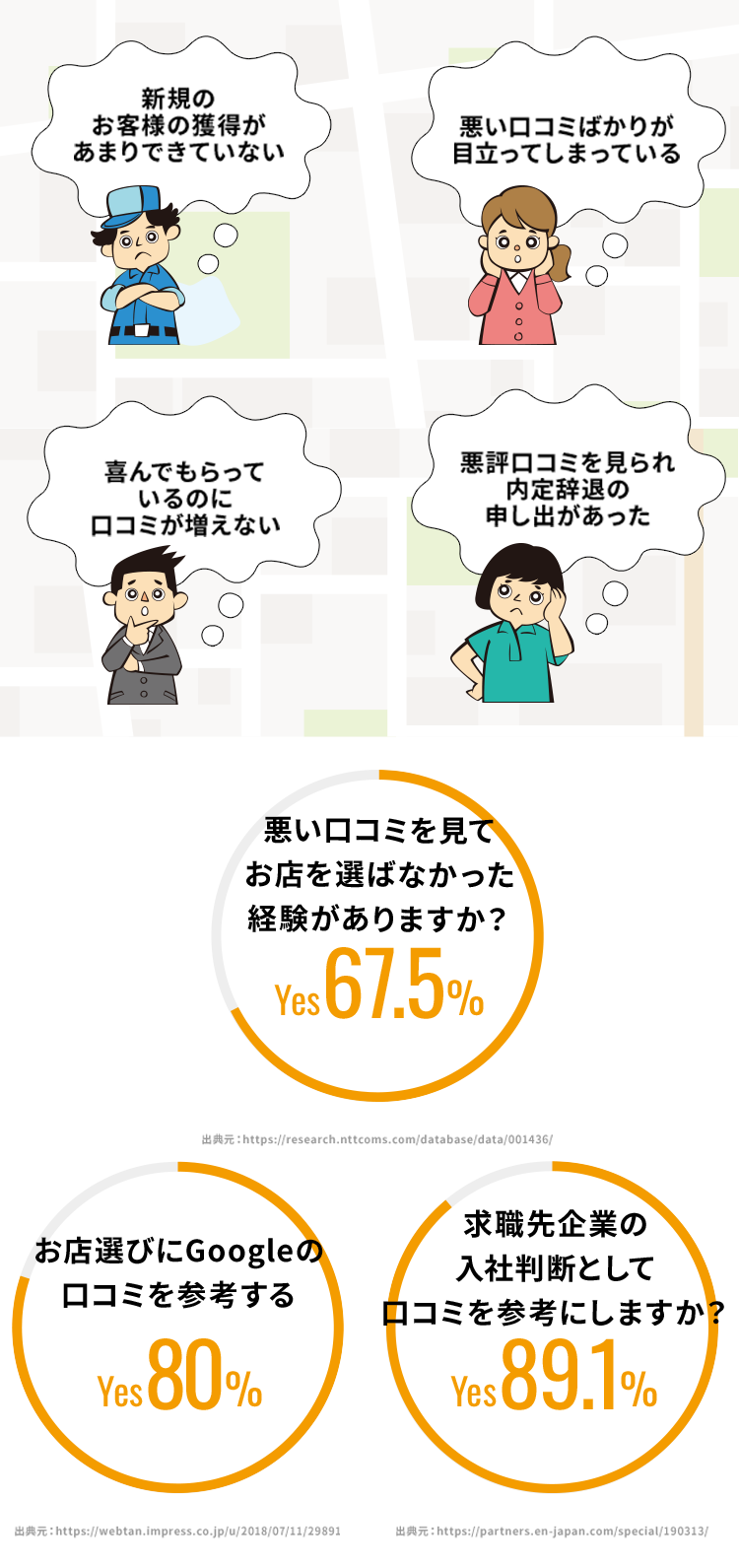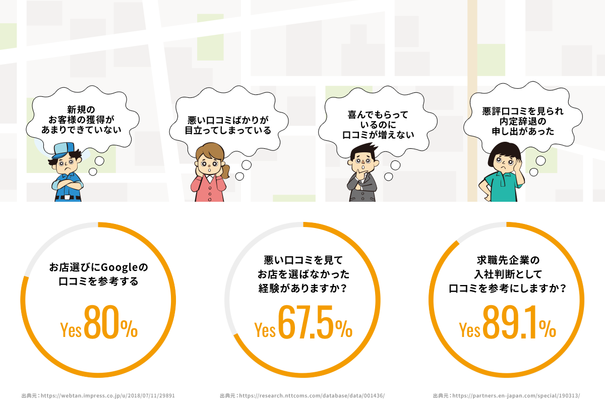 悪評口コミは、リピーターや新規顧客の獲得、採用まで大きな影響が発生します。