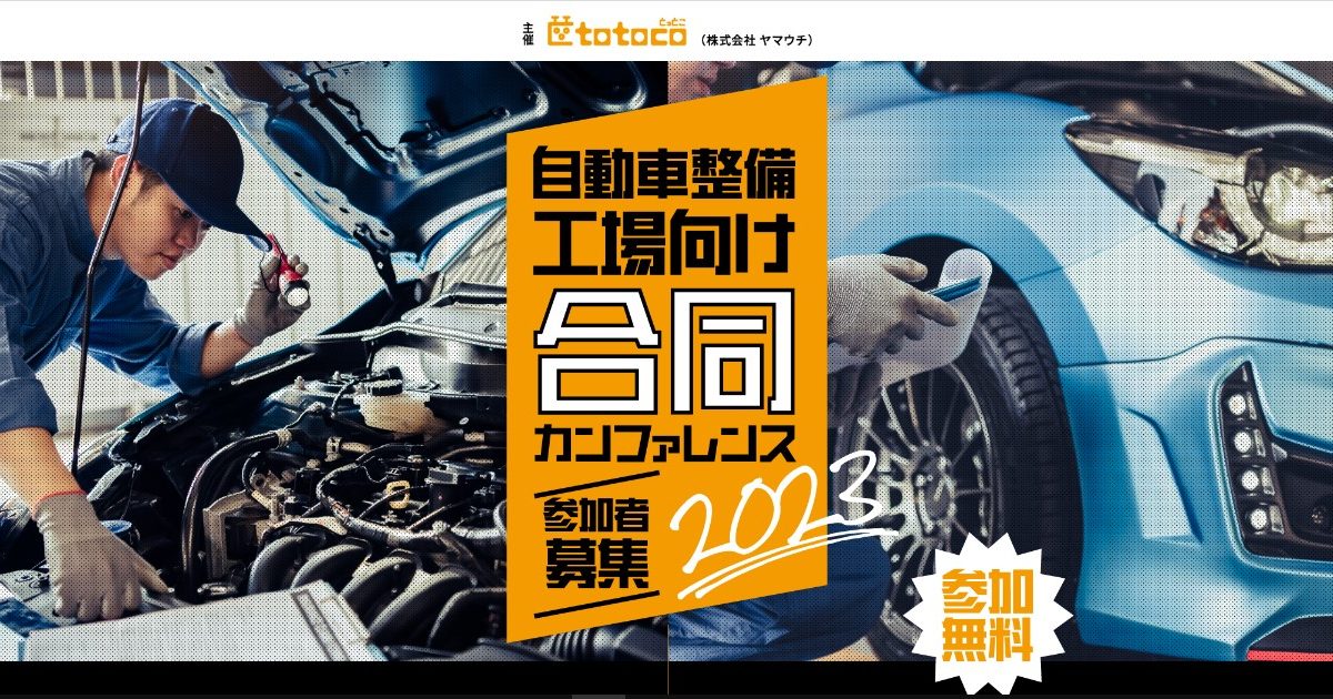 このたび、車検ネット予約管理サービスtotoco(とっとこ)(株式会社ヤマウチ)が主催する、自動車整備工場向けの特別な合同カンファレンスを開催します。