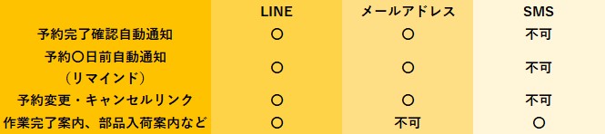 ※LINE送信はLINE連携で設定した専用URLから予約いただいたユーザーのみです。