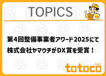 いつも弊社サービスtotocoをご愛顧いただき、誠にありがとうございます。 この度、株式会社ヤマウチが第4回整備事業者アワード2025にてDX賞を受賞いたしました