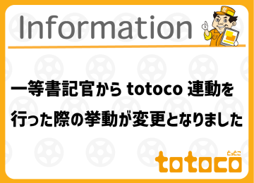 一等書記官(ディー・アイ・シー)・ドリームパワー(日本カーネット)より、totoco連動を行い予約を行った際の挙動を変更しました。