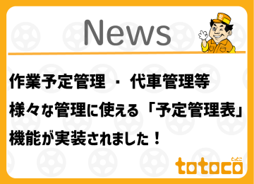 車検ネット予約管理サービスtotoco(とっとこ)新機能追加に関するお知らせです。 日頃より、弊社製品をご愛顧いただき誠にありがとうございます。 この度、